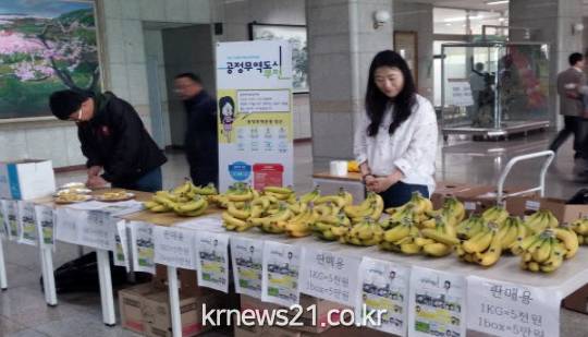 부천시 공무원노조는 공정무역의 날을 맞아 지난 5월 11일 시청 로비에서 공정무역 바나나를 판매했다고 12일 밝혔다.