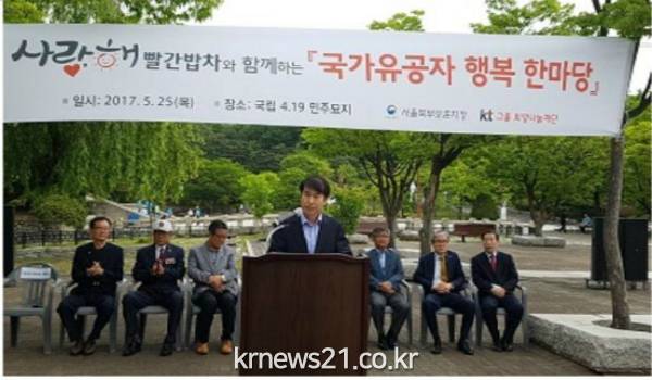 국가유공자와 유가족 등 250여명이 참석한 이날 행사는 국가유공자의 희생과 공헌을 기리며 보훈문화 확산과 기업의 사회적 책임 구현을 위해 kt그룹 희망나눔재단과 함께 국립4.19민주묘지에서 실시했다.