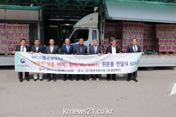 경기동부보훈지청(지청장 정해주)은 30일 지청 1층 중앙로비에서 용인시 88컨트리클럽(이하 88C.C, 대표 김종해)이 후원하고 용인시 7개 보훈단체가 함께하는 ‘따뜻한 보훈 어머!워머(Warmer)’행사를 가졌다.