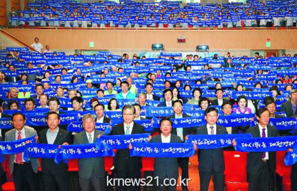 ▲ △ 사진제공=대전시대전시가 ‘4차 산업혁명 특별시’를 선포했다. 대전시는 8일 시청 대강당에서 민·관·산·학·연 관계자 700여명이 참석한 가운데 ‘4차 산업혁명 특별시’ 대전비전 선포식을 열었다. ‘다시 뛰는 대전경제, 우리가 함께 합니다’라는 슬로건을 채택했다. .