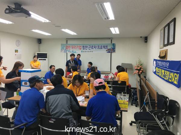 경남 밀양시는 지난 21일 근로자를 위한 통합건강증진사업의 하나로 관내 ㈜제이텍과 제트코리아를 대상으로 ‘열린 우리 기업 힘찬 근로자 프로젝트’사업을 진행했다고 22일 밝혔다.
