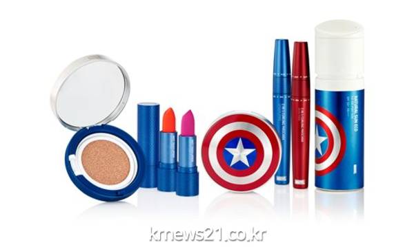 대표 제품인 '안티 다크닝 쿠션'과 '아이스 에어 퍼프 선'은 마블 히어로 중 캡틴 아메리카를 테마로 디자인됐다. 안티 다크닝 쿠션의 경우 캡틴 아메리카의 심볼인 방패를 차용해 고온다습한 환경에서도 화장이 무너지지 않는 안티다크닝 쿠션의 강력한 컬러 래스팅 효과와 어떠한 공격도 막아내는 방패의 성능을 표현했다.