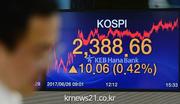 하지만 신중론도 있다. 이종우 IBK투자증권 리서치센터장은 “지난달 코스피 상승을 이끌었던 외국인 투자자의 매수세가 주춤하고 있지만, 하반기에 2500선까지는 갈 수 있다는 전망이 우세하다”고 말했다.