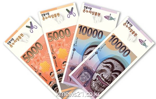 한편 ‘온누리상품권’은 가까운 은행에서 개인당 월 30만원까지 구입할 수 있으며, 설과 추석 명절 기간에는 개인당 월 50만원까지 구입해 사용할 수 있다.