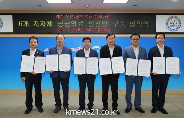 대전시는 6일 충북 보은군‧옥천군‧영동군과 충남 계룡시·금산군 등 5개지자체와 ‘공공의료안전망 구축 및 재난 공동대응 협약’을 체결했다.