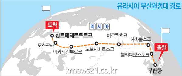 이후 러시아 블라디보스톡 도착해 연길, 백두산을 거쳐 베이징에서 몽골횡단열차(TMGR)을 타고 울란바토르를 지나 이르쿠츠크에서 시베리아 횡단열차(TSR)를 타고 모스크바, 상트페테르부르크까지 총 1만1164㎞의 해륙복합 물류루트를 탐방한다.