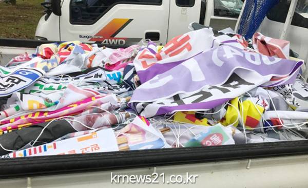 ‘불법 현수막 수거보상제’는 법적으로 지정된 게시대가 아닌 가로수, 가로등, 전신주, 교통시설물 등 금지 장소에 부착된 불법 현수막을 주민들이 직접 수거해 올 경우 소정의 수거비용을 지급하는 제도이다.