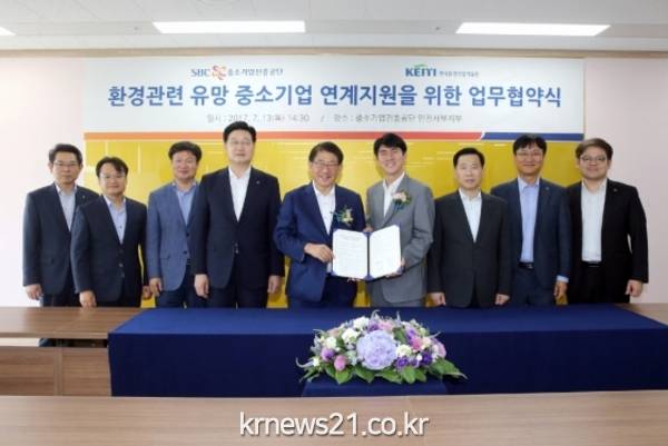 두 기관은 환경산업 분야 유망 중소기업을 발굴해 일자리 창출과 수출 증대 등에서 실질적인 성과를 낼 수 있도록 상호협력, 연계지원 체제를 구축하기로 했다. 환경산업기술원은 환경산업 분야 우수 중소기업을 중진공에 추천하는 한편 환경산업연구단지로 이전한 중진공 인천서부지부가 중소기업 지원업무를 잘 수행할 수 있도록 제반시설 이용 등 편의를 제공하게 된다.