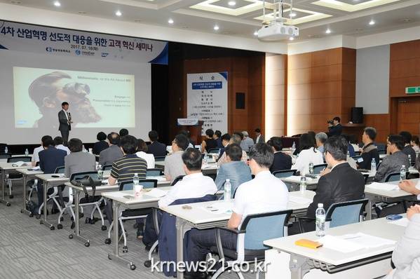성남상공회의소(회장 박용후)는 7월 18일(화) 오전 10시 30분 성남상공회의소 대강당에서 SAP Korea㈜(대표 형원준)와 이노에버솔루션㈜(대표 김낙경)과 공동으로「4차 산업혁명 선도적 대응을 위한 고객 혁신 세미나」를 개최하였다.