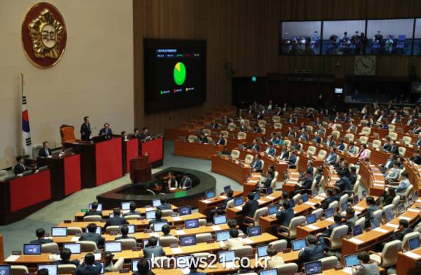 국회는 20일 오후 본회의를 열고 재석 221명 중 찬성 182명, 반대 5명, 기권 34명으로 이 개정안을 가결했다.