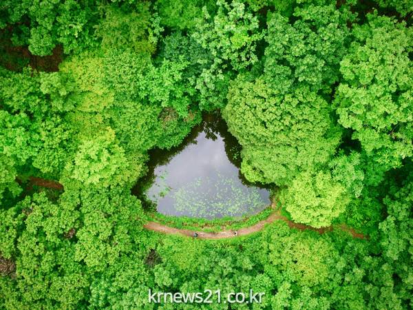 푸른 숲과 하늘을 가득 담은 맑은 물은 폭염에 지친 온갖 산새들과 등산객의 쉼터 역할을 톡톡히 하고 있다.