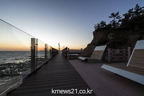 항구에서 해수욕장으로 이어지는‘해안산책로’는 해안선 절벽을 따라 바다 위를 걷는 것처럼 조성돼, 시원한 파도소리를 벗 삼아 산책할 수 있는 힐링 명소로 각광받는다. 산책로 중간에는 추억을 담을 수 있는 포토 존과 망원경도 설치돼 있다.