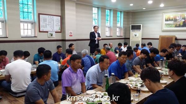 영광군(군수 김준성)은 지난 7월 26일 환경실무원 46명과 점심시간 식사를 하면서 간담회를 가졌다.