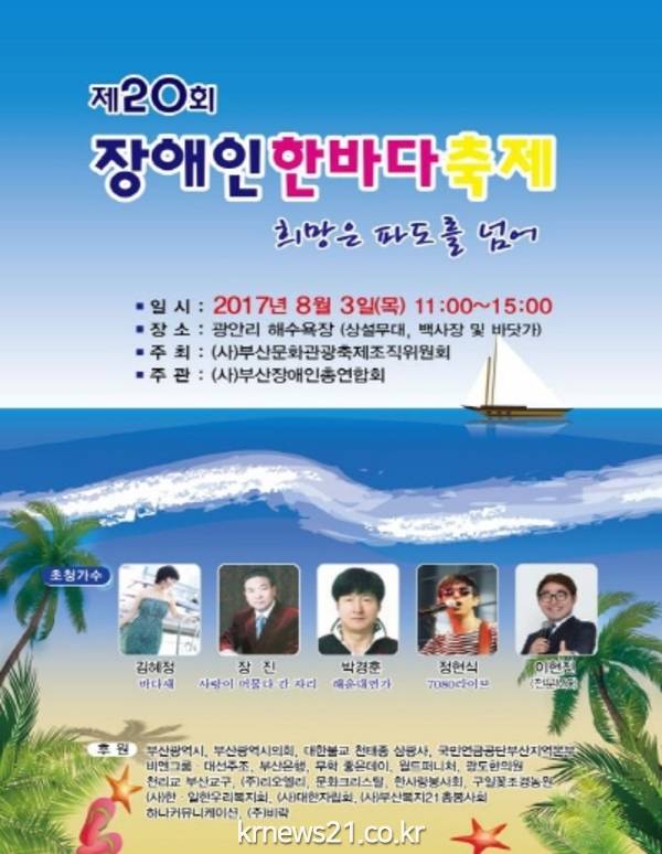 부산시는 8월 3일 광안리해수욕장에서 ‘제20회 장애인한바다축제’를 개최한다고 밝혔다.