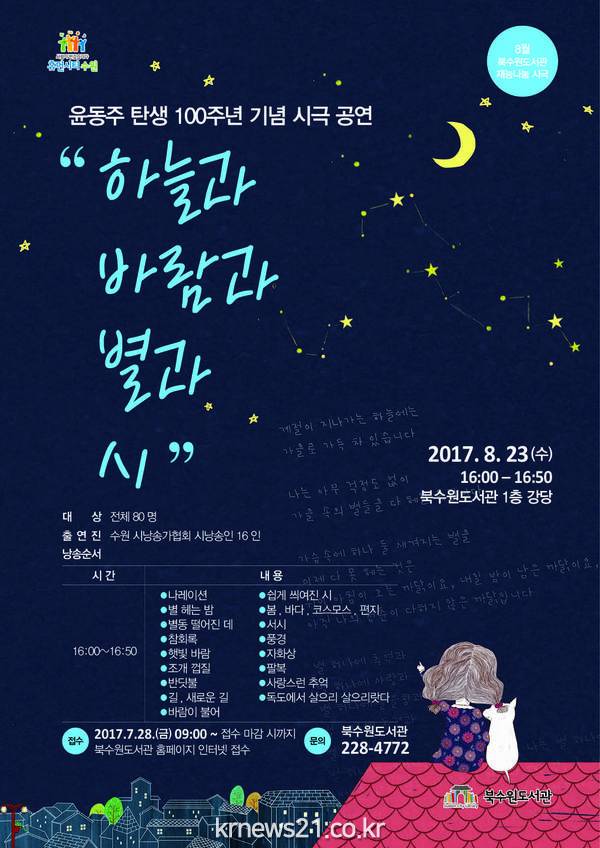 - 북수원도서관, 시극(詩劇) 공연 '하늘과 바람과 별과 시' 등