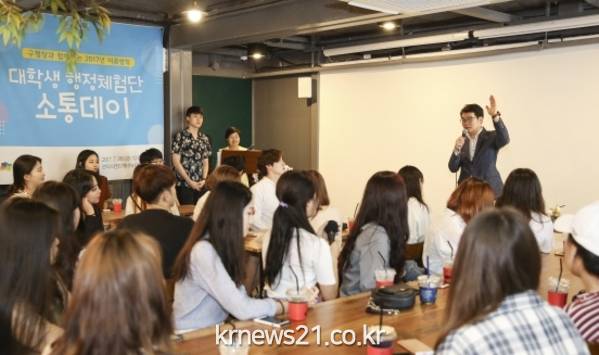 지난 28일, 성동구(구청장 정원오)는 서울숲 언더스탠드에비뉴에서 여름방학 시즌을 맞춰 운영중인 ‘대학생 행정체험단’ 참여 대학생 40명과 훈훈한 대화를 나눴다.