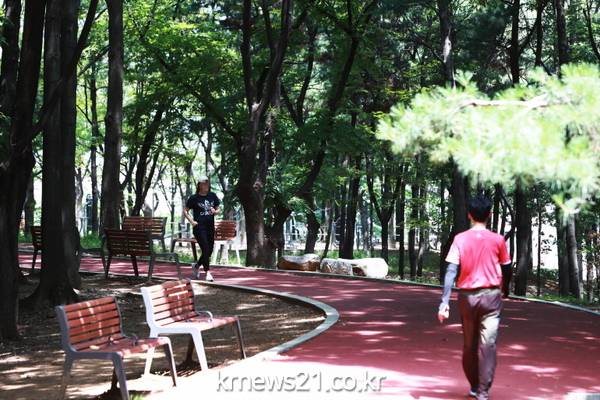 금번 사업의 산책로 교체는 전체 산책로 중 가장 훼손이 심한 구간을(L= 490m) 대상으로 주민 선호도가 가장 높았던 고무칩 포장으로 교체했다. 산책로에 포장된 고무칩은 전문 검사기관(한국건설생활환경시험연구원)을 통한 인장강도 등 물리적 시험과 18개 항목의 중금속 검사 등 유해물질 포함 검사를 실시해 안전함을 인정받았다.