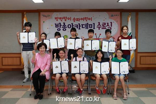 박춘희 서울 송파구청장은 2일 송파구청 대회의실에서 개최된 ‘어린이 방송아카데미’에 참석해 수료증을 수여하고 어린이들과 대화의 시간을 가졌다.
