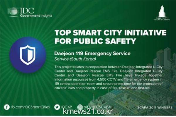 대전시(시장 권선택)의 '119 긴급구조 지원서비스'가 아·태지역 최우수 스마트시티 프로젝트로 선정됐다.