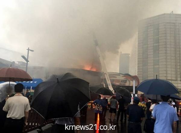 소방당국이 큰불을 30분 만에 잡긴 했지만, 점포가 목조 건물이다 보니 붕괴 우려 때문에 소방당국이 시장 안으로 진입하지 못한 탓에 완전 진화까지 2시간이 걸렸다. 희뿌연 연기가 하늘 높이 치솟으면서 시장 뒤쪽에 있는 높은 건물이 보이지 않을 정도였다.