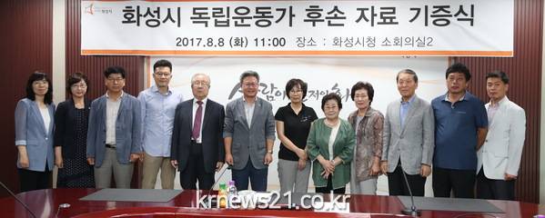 화성시가 8월 15일 광복절을 앞두고 8일 시청 상황실에서 ‘화성시 독립운동가 후손 자료 기증식’을 열었다.
