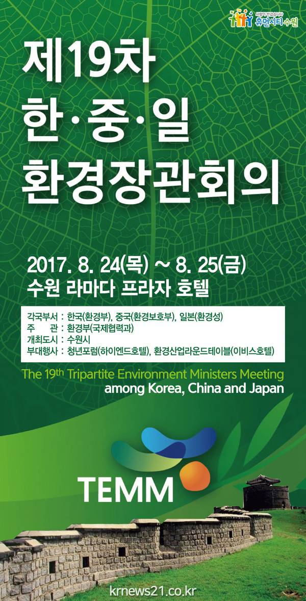 우리나라의 제안으로 1999년 시작돼 매년 열리고 있는 한·중·일 환경 장관 회의는 동북아시아의 환경 문제를 논의하는 자리다. 한국, 중국, 일본이 돌아가면서 회의를 개최한다. 수원시는 우리나라 기초 자치단체 중 최초로 회의를 유치했다.