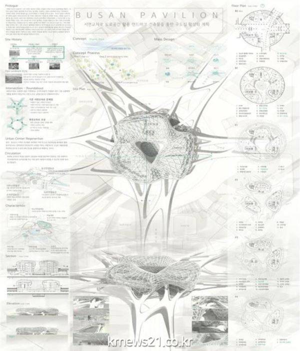 대학·일반부 대상작인 ‘BUSAN PAVILION’은 부산의 심장 역할을 해온 서면의 과거 명성을 찾고자 회전교차로를 도입하고, 원형 교통섬을 활용한 랜드마크를 건립해 구도심 서면의 도시재생과 함께, 재도약의 발판을 마련하고자 했으며, 창의성과 상징성면에서 높은 점수를 받았다.