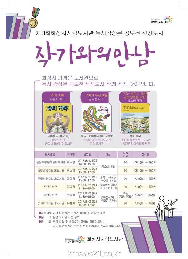 프로그램 접수는 각 도서관 홈페이지(www.hscitylib.or.kr)를 참고하거나, 각 도서관에 문의하면 된다.