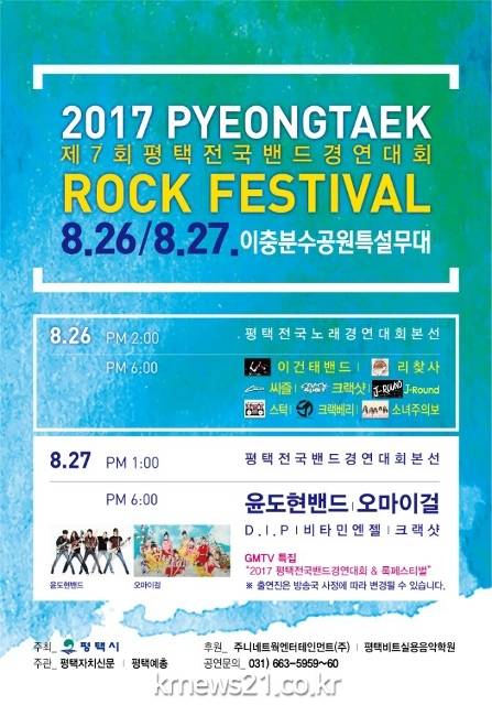 2017 제7회 평택전국밴드·노래경연대회 & 록페스티벌’이 오는 8월 26일(토)~27일(일) 평택시 이충 분수공원 야외공연장 특설무대에서 열린다.
