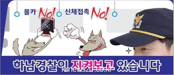 하남경찰서(서장 조상현)에서는 지난 16일부터『사회적 약자보호 3대 치안정책』일환으로 여성을 상대로 하는 성범죄 예방을 위한 하남버스 내부에 경고 게시판을 부착하였다.