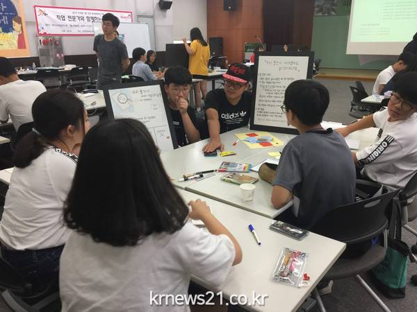 셋째 날은 이틀 동안의 강의와 활동을 토대로 팀별로 협동해 미래형 제품을 기획하고 프리젠테이션 하는 디자인 씽킹 수업을 진행했는데 공부를 도와주는 “BRAIN TAB”, 건강한 음료를 인공지능으로 알려주는 “정보 컵”, 물건을 잘 찾도록 도와주는 “어플” 등 생활 속 아이디어를 반영한 청소년들의 재치 있는 상품들이 눈길을 끌었다.