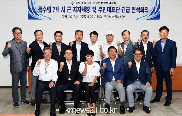 특별대책지역 수질보전정책협의회 주민대표단은 (이하 특수협 주민대표단, 광주-강천심(공동위원장), 이천-박호민(공동위원장), 가평-김인구, 남양주-남궁완, 여주-이명환, 양평-우석훈, 용인-권병헌) 2017년 8월 17일 특수협 회의실에서 7개 시·군 지자체장 (광주시장-조억동, 남양주시장-이석우, 양평 부군수-최문환, 여주시장-원경희, 이천시장-조병돈)과 함께 연석회의를 개최하였다.