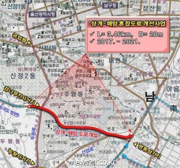 울산시는 산업로와 남부순환도로를 최단거리로 연결할 '상개∼매암 혼잡도로 개선공사'를 이달 중순 착공한다.
