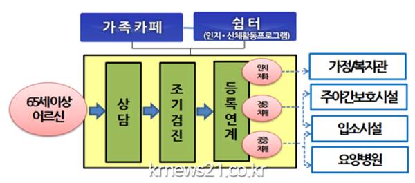 치매안심센터 설치는 치매예방, 조기검진 및 치료, 재활까지 진행 단계별 서비스를 종합적으로 지원할 수 있는 치매통합관리시스템을 갖추기 위한 사업이다.