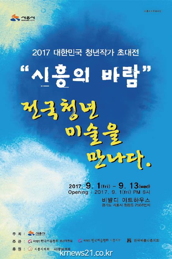 시흥시(시장 김윤식)는 9월 1일(금)부터 13일(수)까지 2017 대한민국 청년작가 초대전 <</span>시흥의 바람 – 전국 청년 미술을 만나다> 전시회를 개최한다.