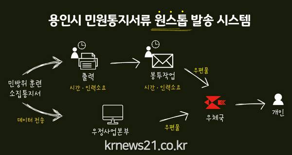 용인시는 민방위 훈련소집 통지서와 같은 대량 발송 우편물을 우정사업본부와 연계해 자동으로 발송할 수 있는 ‘원스톱 우편물 발송 시스템’을 구축해 이달 초부터 본격 가동하고 있다고 30일 밝혔다.