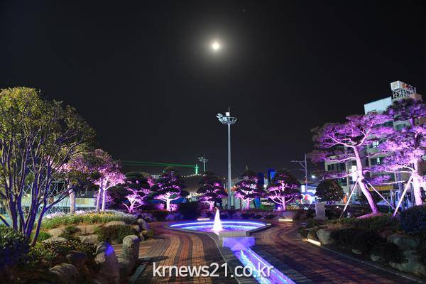 해변공원에는 자연에서 우러나오는 편안한 빛과 감성적인 분위기를 조성하기 위한 수목 조명과 화려한 분수 조명을 동시에 시설해 야간에 풍성한 볼거리를 만들었다.