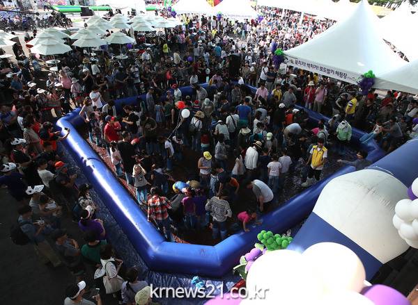 축제장에서 단연 인기를 끈 것은 포도 밟기 체험으로 수많은 시민들이 함께 어울려 포도 밟기에 열중하는 장관도 연출했다.