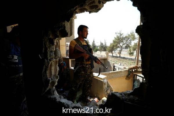 ▲ AFP / Delil souleiman[제공자ⓒ 뉴스21통신. 무단전재-재배포 금지.]미국의 지원을 받고 있는 시리아민주군(SDF)이 IS의 수도격인 '락까'를 점령하고 마을 집들을 살피고 있다.