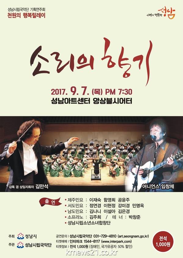 특히, 1970년도 대중들에게 많은 인기를 얻던 2인조 포크그룹 어니언스의 임창제가 특별 출연하여 성남시립국악단과 함께 출연하여 대중들에게 많은 관심이 높아지는 공연으로 기대된다.