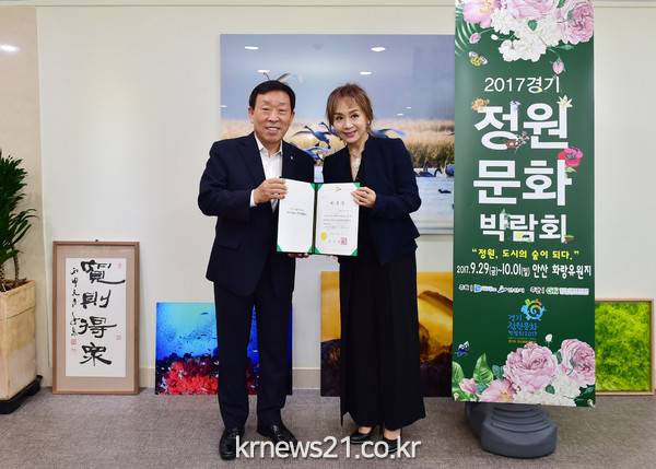 안산시(시장 제종길)는 지난 1일 ‘2017 제5회 경기정원문화박람회’의 홍보대사로 배우 박해미 씨를 위촉했다.