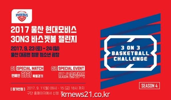 프로농구 울산 현대모비스 피버스가 오는 23일부터 2일 간 울산 대공원 청소년 광장에서 3on3 길거리 농구대회를 개최하고, 대회 종료 후에는 현대모비스 선수들이 함께하는 팬 출정식을 가진다.
