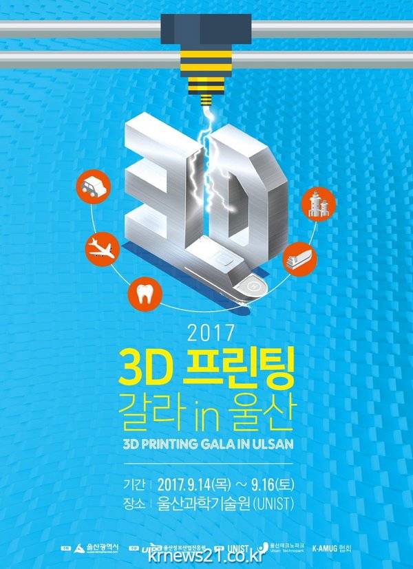 울산시는 오는 9월 14일부터 16일까지(3일간) 울산과학기술원(UNIST) 일원에서 산업용 3D 프린팅의 현재와 미래를 총망라한 ‘2017 3D프린팅 갈라 in 울산’ 행사를 ‘울산정보산업진흥원’ 주관으로 개최한다고 밝혔다.