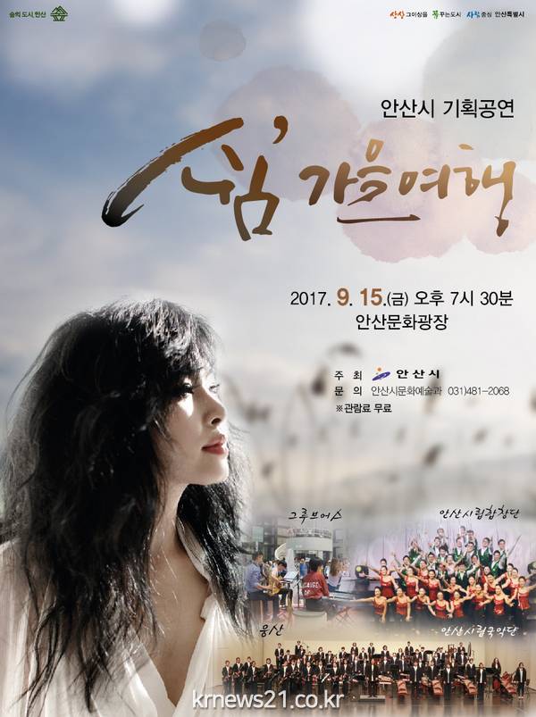 안산시(시장 제종길)는 선선한 바람이 불어오는 가을 문턱에 멀리 떠나지 않고도 바쁜 일상 속에서 잠시 여유를 갖는 시간을 시민에게 제공하고자 오는 15일 저녁 7시 30분 안산문화광장 전망대광장(홈플러스 고잔점 앞)에서 ‘쉼, 가을여행’ 기획공연을 마련한다.