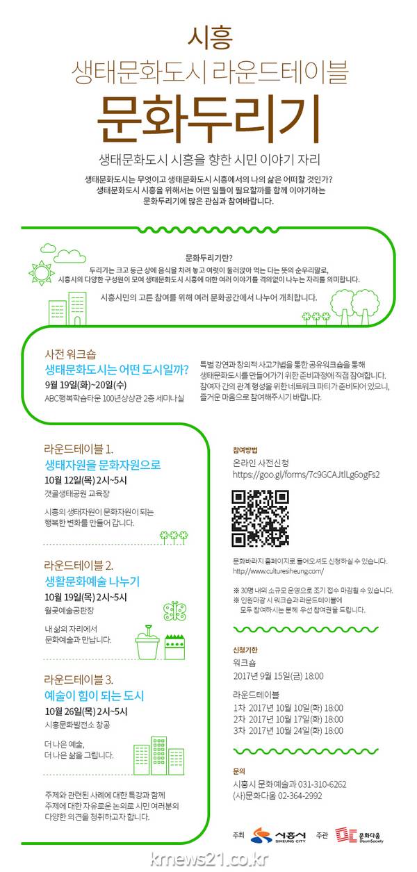 이번 프로그램은 생태문화도시 시흥을 함께 만들고자 하는 누구나 무료로 참여가 가능하며, 총 30명 선착순으로 모집한다.