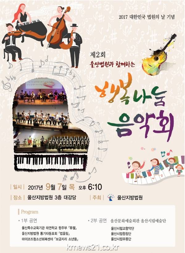 그 일환으로 울산지법은 7일 저녁 3층 대강당에서 '제2회 행복나눔 음악회'를 개최했다.