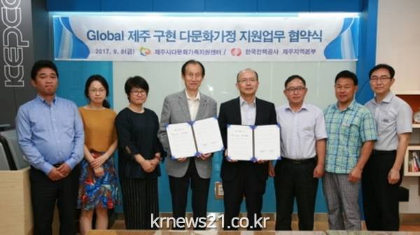 한국전력 제주지역본부(본부장 황우현)는 8일 제주본부 회의실에서 제주시다문화가족지원센터(센터장 김정우)와 제주지역 다문화가정 지원업무 협약을 체결했다고 이날 밝혔다.