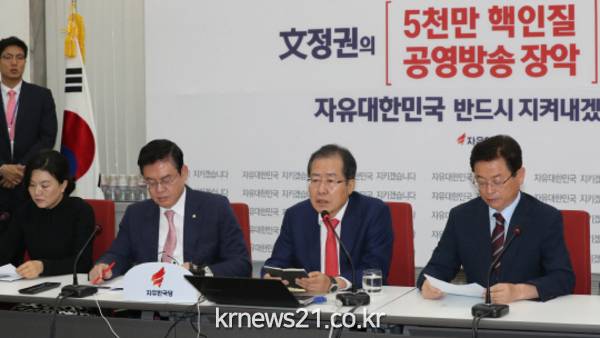 홍 대표는 이날 오전 국회에서 열린 최고위원회의에서 "앞으로 대한민국을 위해 우리가 해야 할 가장 중요한 일은, 우리가 살기 위한 방책의 마지막 수단으로 천만 서명운동과 핵무장 외교를 펼칠 것"이라며 이같이 말했다.