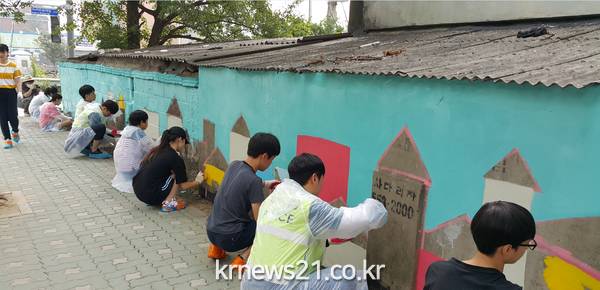 인천계양경찰서(서장 정진관) 계산지구대에서는 지난 9일(토) 오전 관내 주민 불안지역 및 청소년 비행 우려 장소를 선정하여 인근 벽면에 범죄예방 환경개선을 위한 민경 합동 벽화그리기 행사를 가졌다."고 밝혔다.