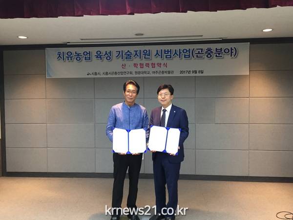 시흥시 곤충산업연구회(이석철 회장)는 한국동물매개심리치료학회(김옥진 회장)·여주곤충박물관(김용평 관장)과 곤충을 활용한 치유농업 활성화를 위한 업무 협약을 지난 9월 8일, 생명농업기술센터 영농교육장에서 체결했다.